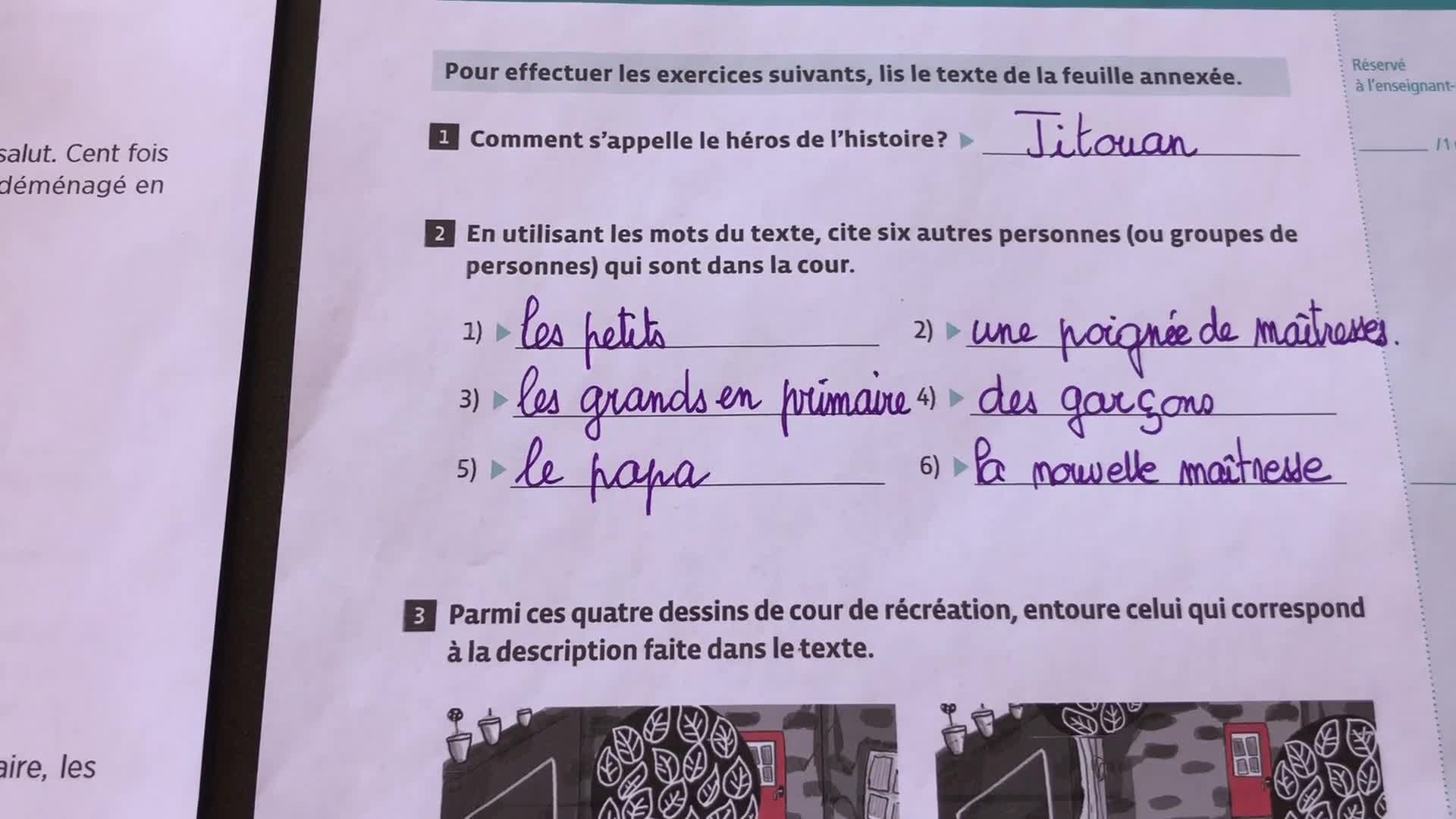 La cour de récréation corrigé ex 1 à 4