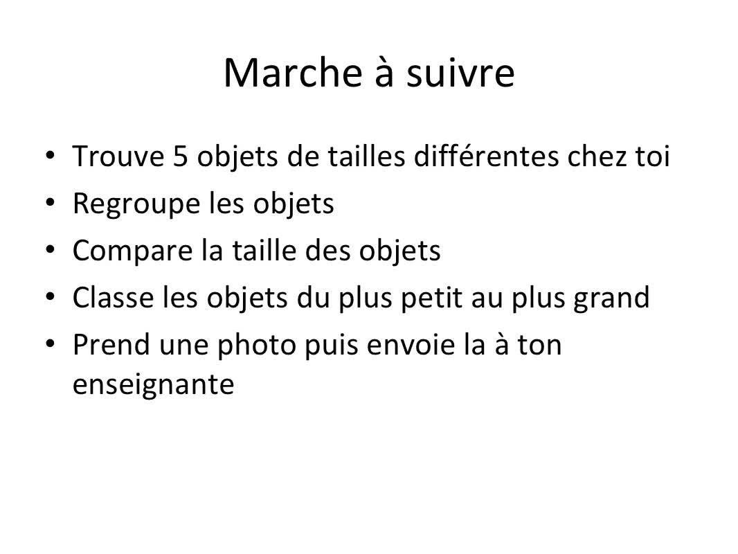 Décrire un objet par oral, Taille